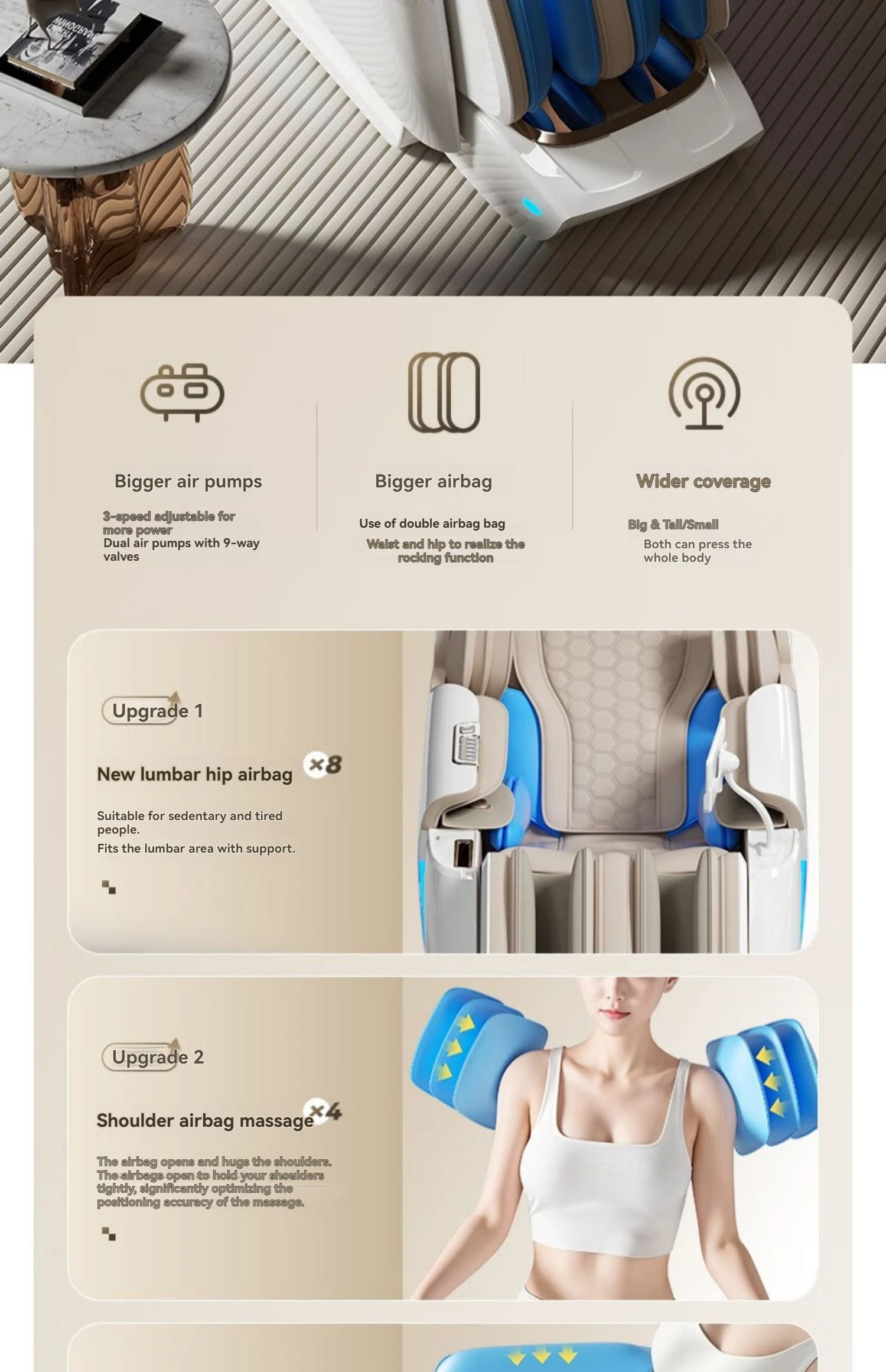 • Muscle-Targeting AI : Our 10-year research developed 3D/4D/6D body scanning that adjusts to your pain points