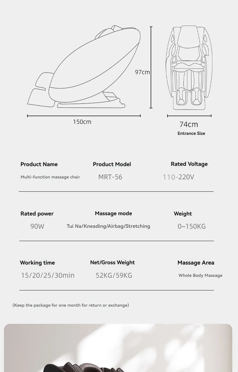Massage areas: Neck + Back + Waist + Buttocks + Legs
