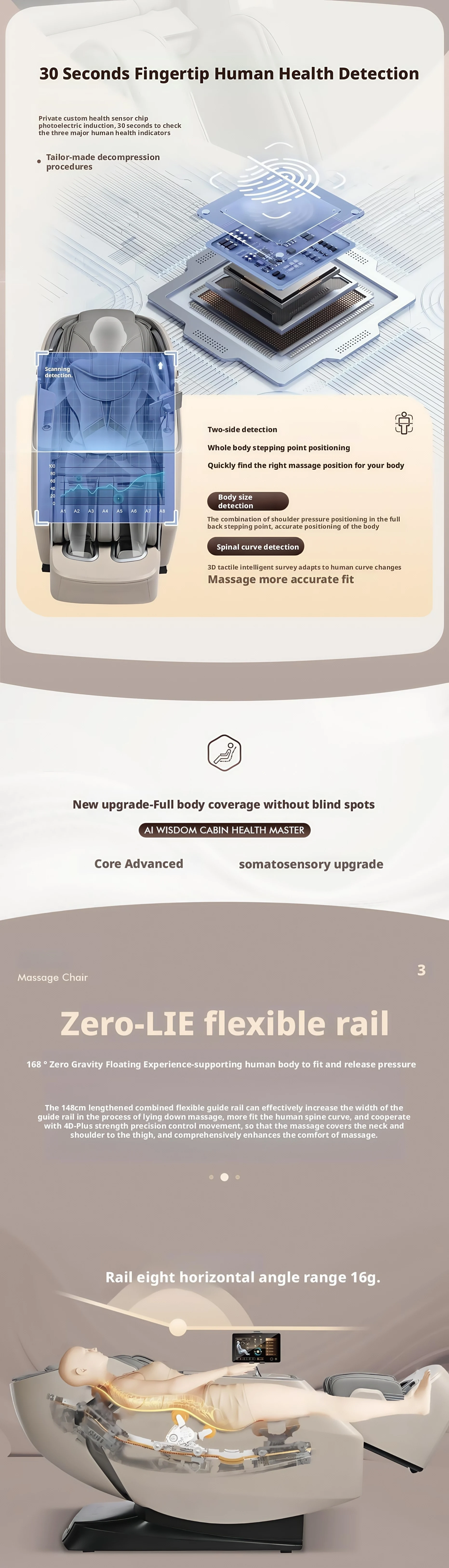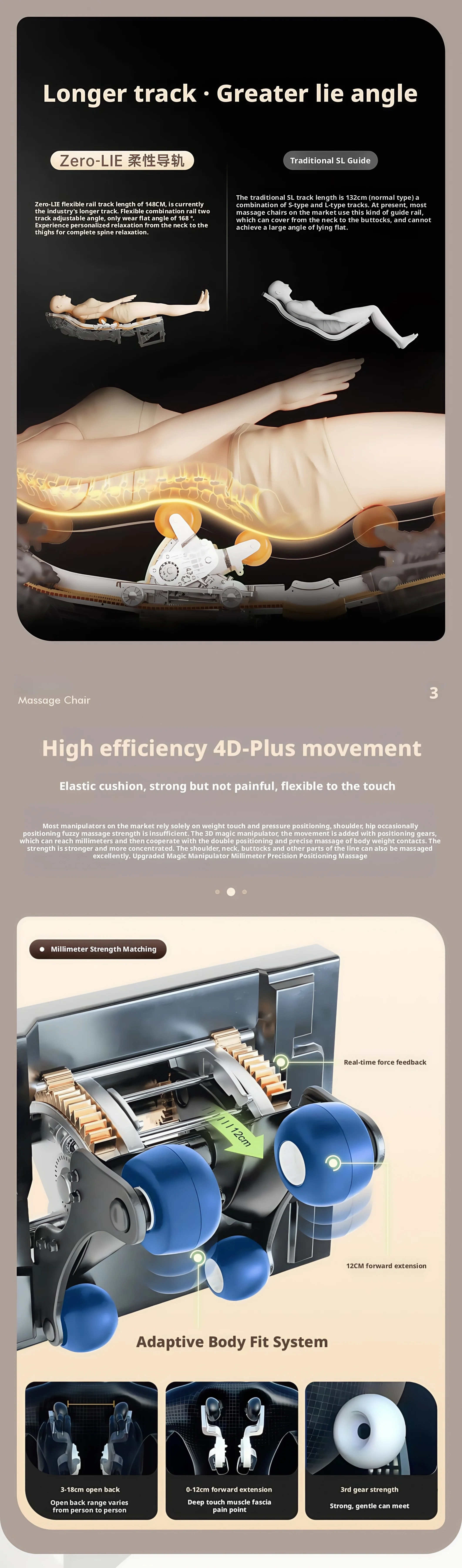 Zero-LIE rail + 4D-Plus mechanism (neck → thighs)