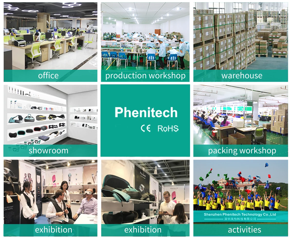 Shenzhen Phenitech Technology Co., Ltd is a professional manufacturer of massage and beauty device in China. We have developed several series of products, such as neck massager, massager pillow, hand massager, foot massager, eye massager, massager gun and beauty products. Phenitech has developed a world leading company by our rich experience and continued research for many years. We produce quality products to meet international needs depending on our advanced facility and strict management. Our clients have enjoyed our good products and excellent service for many years. We obtained good business reputation in providing perfect products, excellent service, prompt delivery time and competitive price.